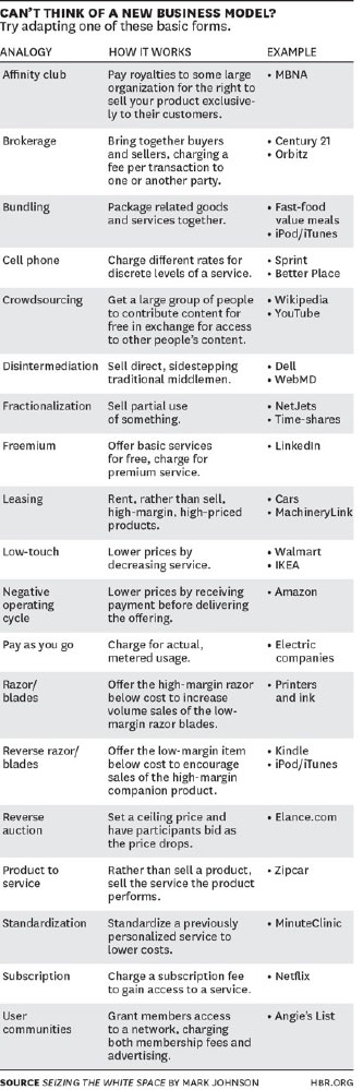 Many have written on business model because it is an attractive way to examine what is a business and how it operates, and it is possible to go astray and get caught in frameworks. They have identified various dimensions that go into making a business model such as cost, channels, partners, customers and their segments. You will see here a table of possible business models. I leave it to you to judge.